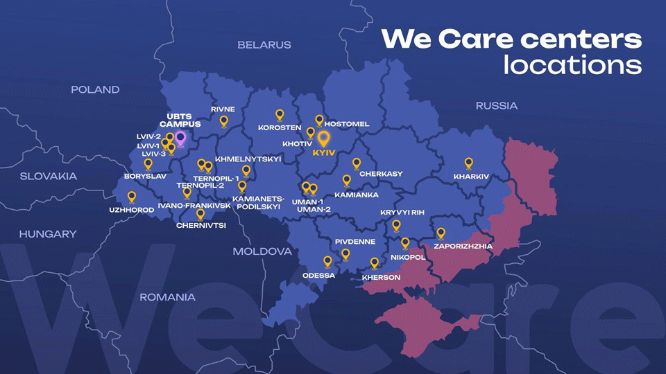 UBTS launched a comprehensive humanitarian aid effort on the first day of the Russian invasion into Ukraine. This led to the development of a network of 26 WeCare Centers throughout Ukraine as of April 2026.